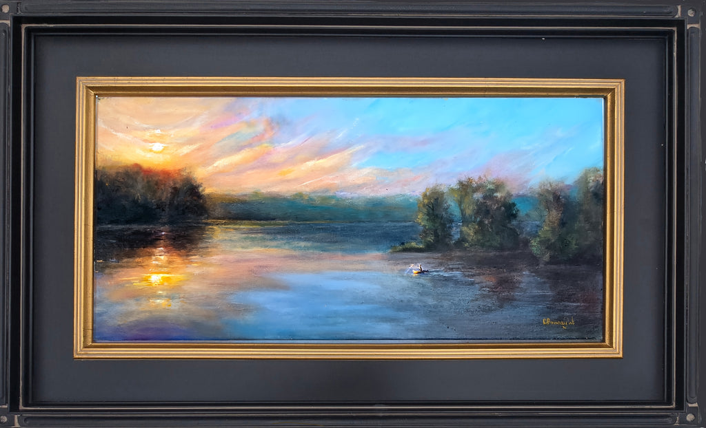 This piece is personal to me, I painted this from a bridge over three days in my hometown overlooking Lake Acworth. Painting takes me to a space where I can rest in the Divine, It gets me out of myself where I can see the bigger picture that I am a tiny little whisp in. As I painted this two things came to mind, a bit of a line from King David that reads "if I rise with the wings of the dawn...even there your hand will guide me" and pondering naming this piece that very title - a hawk came and sat with me for the next hour or so. I got beautiful pictures of him. I have never painted the sunrise en plein air - so I was nervous but this fella kept me in peace. I hope that it conveys the steady tranquil I felt in the early still morning, just me and God...and a red tailed hawk.
